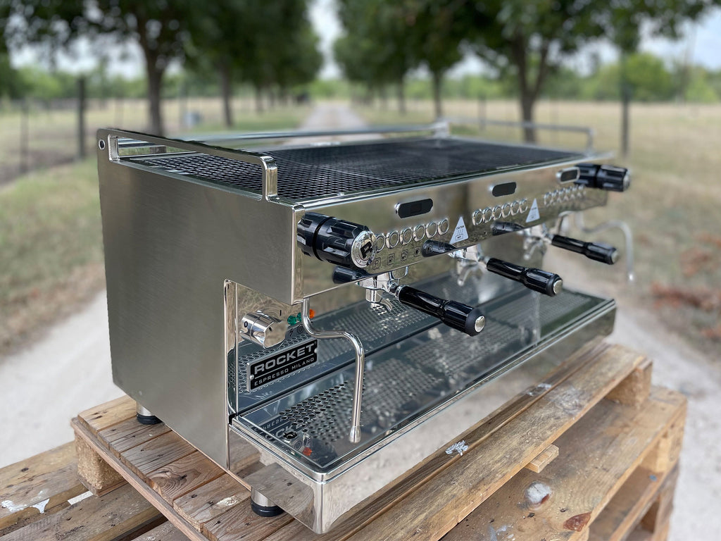 The Rocket Boxer Timer is an excellent commercial espresso machine for a high-volume volume café. Equipped with features such as volumetric controls, shot timers, insulated steam wands, and automatic backflush programming, the Boxer Timer eases your barista's workflow and simplifies maintenance.